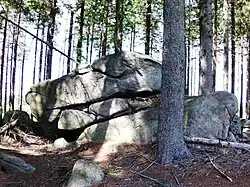 The rock is inscribed with the words "Ferdinands Stein". Behind it on a smaller rock embedded in the ground is the inscription "Hier schoss Ferdinand Graf zu Stolberg Wernigerode am 23ten Merz 1798 einen Wolf" ("Here Ferdinand, Count of Stolberg- Wernigerode shot a wolf on 23 March 1798").[1] This was the last wolf living in the wild that was shot by the Count.[2]