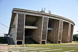 The Ferenc Puskás Stadium (Hungarian: Puskás Ferenc Stadion), or formerly People's Stadium (Népstadion), was a multi-purpose stadium in the 14th district (Zugló) of Budapest, Hungary. It was situated between the Puskás Ferenc Stadion and the Keleti pályaudvar metro stations. It was used mainly for football matches. The stadium, which was an all-seater, in the 2000s had a safe capacity of 38,652, though its original capacity exceeded 100,000. The stadium was closed in 2016 and demolished in 2017 to give place to the Puskás Aréna.