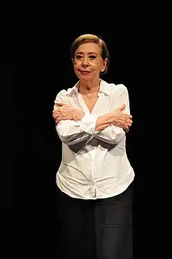 Among the various national and international awards she has received in a career spanning more than sixty years, she was awarded in 1999 her country's highest civilian honor, the National Order of Merit, "in recognition of her outstanding work in the Brazilian performing arts," delivered by then-president Fernando Henrique Cardoso.[10] In addition to having been awarded the Molière Prize five times,[11] Fernanda Montenegro is a three-time recipient of the Governor Award of the State of São Paulo.[11] She also won the Silver Bear for Best Actress at the 48th Berlin International Film Festival 1998 for her performance as "Dora" in Central Station by Walter Salles,[12] a role which earned her nominations for the Academy Award for Best Actress and the Golden Globe Award for Best Actress in a Motion Picture – Drama in 1999, among other distinctions.[13] On television, she was the first actress hired by TV Tupi, in 1951, where she starred in teletheater shows under the direction of Fernando Torres, Sérgio Britto and Flávio Rangel. She made her debut in telenovelas in 1954 with A Muralha on RecordTV, where she appeared in other productions as well.[14] She has done work in most of Brazil's main broadcasters, such as Band, TV Cultura, RecordTV, and TV Globo (where she remains since 1981), in addition to the defunct TV Excelsior, TV Rio and TV Tupi.[15][16]