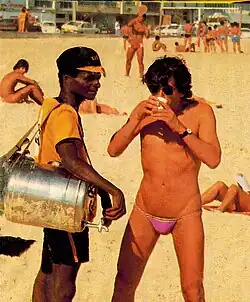 Just after Gabeira's return from exile, a photo of him wearing a very small knitted swimsuit on Ipanema beach became a national scandal. Years later, Gabeira revealed that the suit was actually the bottom of one of his cousin Leda Nagle's bikinis.[14]