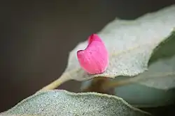 | Gall induced by Feron bakkeri on Quercus berberidifolia leaf, San Diego County, 2021 | |