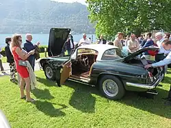 Mario Boano not only owned a design studio located in Turin, but also had a factory in Brescia that was able to receive and complete large orders. Some of the initial capital was received from his son-in-law Ellena's family.[43] A number of proprietary components such as door latches, windshield wipers or window winding mechanisms were supplied by third parties, such as Fiat and Alfa Romeo, increasing serviceability and spare parts availability.[4] Neither Boano nor Ellena had any identifying script or emblem on their cars, unlike Pinin Farina, because they acted as subcontractors.[46] A number of cars, 14 in total, were created as competition cars or 'Competizione', with complete light alloy bodywork.[47][48]