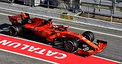 Ferrari designed and constructed the SF90 as a Formula One car to compete during the 2019 Formula One World Championship.[4] The car was driven by four time world champion Sebastian Vettel and Ferrari debutant Charles Leclerc in every race of the 2019 season.[5] Ferrari named the car the SF90 to celebrate the company's 90th anniversary and in keeping with tradition Vettel named his car "Lina".[6][7]
