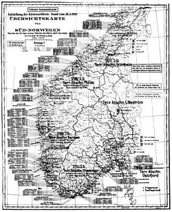 Festung Norwegen (transl. Fortress Norway) was the extensive defense and fortification system constructed in Norway, part of the Atlantic Wall, after the conquest and occupation of Norway by Nazi Germany in World War II.[1] Some, including Reichskommissar Josef Terboven, thought that these fortifications would serve effectively as a last perimeter of defense of the Third Reich in the event of Allied victory on the continent. This led to German troops being diverted from mainland Europe, which resulted in a quicker end to the war.