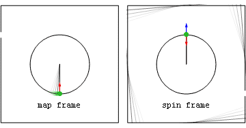 Map and spin frame perspectives of physical (red) and fictitious (blue) forces for an object released from a carousel