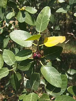 It grows as either a shrub or small tree.[1] As the figs ripen, their colour changes from green to yellow to reddish-brown and finally, to black.[1] The fruit is edible and palatable, tastier than most other fig species.[3]