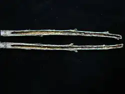 In a field study in Taiwan, ants were found to inhabit cavities within internodes of young branches of Ficus subpisocarpa.[6] They feed on wasps, more commonly on non-pollinating rather than the pollinating species necessary for the fig to reproduce. It is possible that the fig developed the cavities to accommodate the ants. 75% of ants recorded in the study belonged to the genus Crematogaster, with the remainder belonging to the genera Technomyrmex, Myrmica and Prenolepis. Sometimes two ant species shared the cavities. The cavities mostly ranged between 2 and 14 cm (1 and 5.5 in) in length. The ants appear to tend aphids and scale insects that are present on the fig plant.[6] Ficus subpisocarpa is the second Ficus species observed with ants inhabiting branch cavities, the first observation was done in Borneo on Ficus obscura var. borneensis.[7]