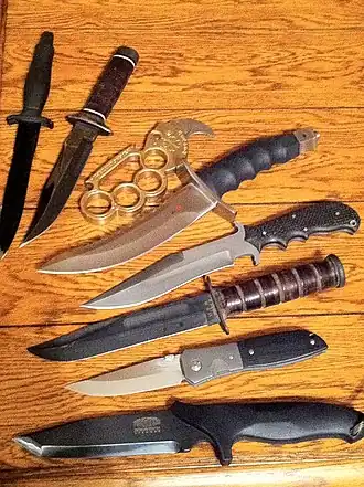 A fighting knife has a blade designed to most effectively inflict injury in close-quarters physical confrontations.[1][2][3][4] The combat knife and the trench knife are examples of military fighting knives.[1][5]
