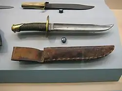 - ^ Todd, Frederick P., American Military Equipage, 1851–1872, Scribners (1980), pp. 180-181: "The American fighting knife of the mid-19th century was par excellence the 'bowie knife'. The term itself defied definition in those days as it does today, but a rough description would be a large sheath knife, usually with a small cross guard and a clipped point, whose story began in the American Southwest about 1830."