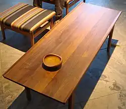 Juhl gave a soft edge to the lines of wooden modernist chairs, favouring organic shapes which often took the wood to the limits of what was possible. He generally used teak and other dark woods, unlike many of the other proponents of the Danish Modern movement who often used oak in their designs.[5]
