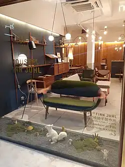 In 2000, Juhl's partner Hanne Wilhelm Hansen passed the rights to his designs to the company Onecollection. In 2010 one of his sofas, the Baker Sofa, relaunched by Onecollection, won a Wallpaper Magazine Design Award in the Best reissue/sofa design category.[9] Onecollection has changed its brand name to 'House of Finn Juhl' and the company has a collection of more than 40 relaunched pieces of Juhl's designs. Hanne Wilhelm Hansen established the Finn Juhl Prize in 2003 to honor her partner's legacy. The prize is annually awarded to recipients who have made significant contributions in the field of furniture design.[10] After Hansen's death in May 2003, their home, which she had left unchanged after his death, was made into a historic house museum, operated as part of the Ordrupgaard Art Museum whose premises it adjoins.[11]