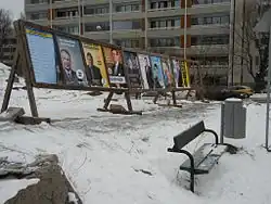Professor Leif Åberg has described the campaign as "relatively civil,"[49] but there have been a few accusations of negative campaigning. Some of Pekka Haavisto's supporters felt offended over a television advert by the Paavo Väyrynen campaign which says that "a house needs a master and a mistress." Haavisto's supporters interpreted this as a taunt on Haavisto's relationship status (Haavisto lives in a registered partnership with another man). Väyrynen responded by rejecting this interpretation and in turn accused Haavisto's supporters of deliberately twisting his words.[50] The satirical television programme YleLeaks mocked the election in mid-December 2011. Niinistö's wife, Jenni Haukio, complained with a letter to YLE's A Studio saying that she was a private person. An A-Studio political reporter also criticised Iltalehti of news in favour of Sauli Niinistö.[51] Foreign Minister Erkki Tuomioja accused editor A.-P. Pietilä of undervaluing Haavisto's abilities in foreign policy based on his companion; Pietilä wrote, citing an unnamed civil servant, that Haavisto's election as president might complicate Finland's bid for being elected as a non-permanent member in the UN Security Council as several countries where homosexuality is outlawed might oppose the bid in this scenario. (Pietilä works for Suomen Lehtiyhtymä, which is owned by the NCP MP Eero Lehti).[52]