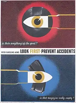 Gun safety includes the training of users, the design of firearms, as well as the formal and informal regulation of gun production, distribution, and usage.[1] This includes mishaps like accidental discharge, negligent discharge, and firearm malfunctions, as well as secondary risks like hearing loss, lead poisoning from bullets, and pollution from other hazardous materials in propellants and cartridges.[2]