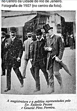 In 1915, Firmino and Félix Pacheco organized a campaign against Miguel Rosa reelection in Rio de Janeiro.[8] The campaign was also supported by Antonio Freire. As a result, Eurípedes Clementino de Aguiar won. Eurípedes won for a small difference, and Miguel didn't recognize the change of the government. Eurípedes supporters marched to Teresina to force the change and Miguel fortified the Government Palace, fearing an armed fight. The local population fled to Flores do Piauí. but Félix Pacheco got an habeas corpus from the Supreme Federal Court (STF) to reaccept the Congressmen tied to Eurípedes in the Chamber of Deputies. They came back to their roles and recognized Eurípedes as Governor.[3]