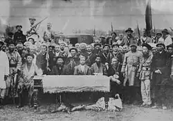 Hostility to Christianity was espoused by the Committee for National Revolution.[19][20] The Bughras applied Shari'a while ejecting the Khotan-based Swedish missionaries.[20] They demanded the withdrawal of the Swedish missionaries while enacting Shariah on 16 March 1933.[19] In the name of Islam, the Uyghur leader Amir Abdullah Bughra violently physically assaulted the Yarkand-based Swedish missionaries and would have executed them all, but they ended up only being banished thanks to the British interceding in their favor.[21] There were beheadings and executions of Christians who had converted from Islam to Christianity at the hands of the Amir's followers.[22] The missionaries faced hostility from Muhammad Amin Bughra.[23]