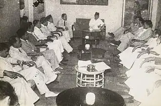The first Sjahrir cabinet was established following the 11 November 1945 demand from the Central Indonesian National Committee, which was the de facto legislature, that the cabinet be responsible to it, not to President Sukarno. The existing cabinet was dismissed and Sutan Sjahrir was asked to become prime minister. He agreed to do so on the condition he was allowed to select his own cabinet. The cabinet lineup was announced on 14 November 1945.[1][2]