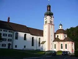 The abbey premises were sold in 1852 to a textile factory. Later a business and trade school was set up here. In 1879 the buildings were acquired by the Catholic voluntary society "Verein St. Iddazell", who established in them the St. Iddazell orphanage. During this time, several cases of abuse have been uncovered which include physical, sexual and psychological abuse during the 1950s up to the 1970s.[1] A commission was installed, which produced a report in 2014 that largely confirmed the accusations and identified lack of oversight by the authorities as a major contributing factor to the abuse.[1] The report also uncovered that students were used as test subjects for non-approved drugs without informed consent and without proper approval by the authorities at the psychiatric hospital in Münsterlingen, experiments which were led by Roland Kuhn.[2][3] The canton of Thurgau issued an official apology for the abuse in 2014.[4]