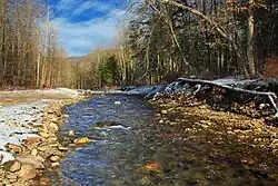 Public recreation activities include canoeing, birdwatching, and fishing. The creek is known for its trout population, which includes brook, brown and rainbow trout; it also contains many other species of fish.[4] Northern hardwood trees and ruffed grouse live in the surrounding area.