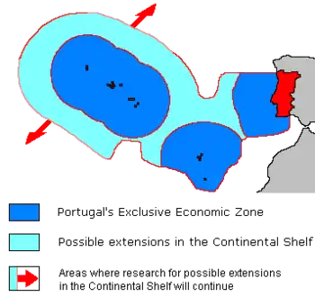 Portugal's Exclusive Economic Zone, a sea zone over which the Portuguese have special rights over the exploration and use of marine resources, has 1,727,408 km2. This is the third-largest Exclusive Economic Zone of the European Union and the twentieth-largest in the world.[2]