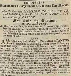 - ^ "Correspondence concerning the purchase of Fishmore Hall". Shropshire's History Advanced Search. Retrieved 17 October 2019.