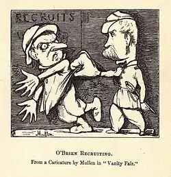His friend William Winter collected The Poems and Stories of Fitz James O'Brien, to which are added personal recollections by associates that knew him.[7] Winter wrote a chapter on O'Brien in his book Brown Heath and Blue Bells (New York, 1895). O'Brien was satirized as "Fitzgammon O'Bouncer" in William North's posthumously published novel The Slave of the Lamp (1855).[8]