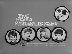 Five Have a Mystery to Solve is a 6-part 1964 British film serial directed by Ernest Morris and starring David Palmer and Darryl Read. It was written by Michael Barnes, based on the novel of the same name by Enid Blyton, and made by the Children's Film Foundation.[1][2][3]