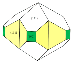 - Common is the Marks decahedron with {100} facets and a re-entrant surface at the twin boundaries for