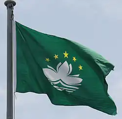 - ^ Chinese: 中華人民共和國澳門特別行政區區旗; Portuguese: Bandeira regional da Região Administrativa Especial de Macau