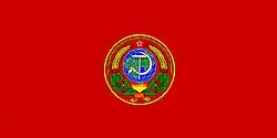 | 1939–1941 | 1:2 | Tuvan People's Republic | There existed an alternate version of this flag with only one line of text,[2] which matches the change made to the Tuvan emblem in 1939.[4][5] Since the flag was simply "red with the emblem in the center" it automatically changed along with the emblem and there was no formal change in the flag until 1941.[5] |