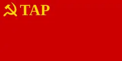 | 1941–1943 | 1:2 | Tuvan People's Republic | In solidarity with the Soviet Union after the German invasion, Tuva changed its flag in the newly adopted constitution of 1941, to more resemble the flags of the Soviet republics.[2][3] The flag uses the initials of the state (Tıwa Arat Respublik) (25 June 1941 – 8 September 1943) |