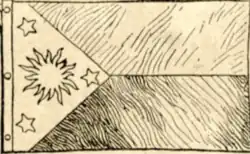 The flag's original symbolism is enumerated in the text of the independence proclamation, which makes reference to an attached drawing, though no record of the drawing has surfaced.[31] The proclamation explains the flag as follows: