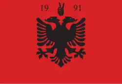 ![]() | c.1991 | Demonstrations flag | The flag used by the Albanian ethnic minority of Socialist Yugoslavia in 1991 during Demonstrations |