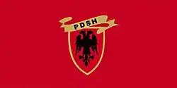 ![]() | 1944 | Flag of the First Macedonian Brigade (WW2) | Red flag and the lower half of the flag the unit's name is written in yellow capital Cyrillic letters. |