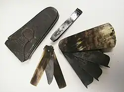 - Horn-handled fleam with inset thumb lancet