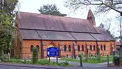 By 1860, Charles Lefroy, a local squire, commissioned All Saints' Church – in the Blue Triangle area, in memory of his wife who had died in 1857. The architect was William Burges. The ecclesiastical parish of Crookham-cum-Ewshot[10] was split into two in 1862, with the northern section based on All Saints' church becoming the new parish of Fleet. On 22 June 2015, the roof of All Saints' church was destroyed by fire following an arson attack.[11] The church was returned to a condition where it could hold services by 30 April 2023 when it was reconsecrated.[12]