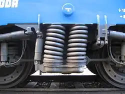Flexicoil suspension is a type of secondary suspension for railway vehicles, typically having steel coil springs between the bogies and chassis of a passenger coach, freight car, or locomotive. Suspension systems using steel springs are more common than those with air springs, as steel springs are less costly to make, relatively wear resistant, and require less maintenance.