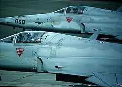 Fliegerstaffel 1 (No. 1 Squadron) was a professional military pilots squadron, belonging to the Überwachungsgeschwader of the Swiss Air Force until its last service in 2003. At that point, it was equipped with Northrop F-5 and used the military airfield of Turtmann as a designated war base. Fliegerstaffel 1 carried a stylized Vogel Rokh as its coat of arms, a red background and a white figure 1 completed their emblem.