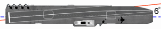The angled flight deck was first tested in 1952 on HMS Triumph by painting angled deck markings onto the centerline of the flight deck for touch-and-go landings.[18] This was also tested on USS Midway the same year.[19][20]