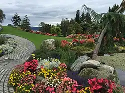 Today, the island is visited by over 30,000 guests each year and functions as a popular tourist site, complete with a garden tour and lunch/dinner in the on-island restaurant.[5] The island is currently run by Aasmund's son, Olav Bryn, who plants and redesigns the garden every year. He continually tests new plants to see if they will adapt to the northern climate. Bryn also tests different arrangements.[4] Gardens on the island range from roses to cacti and each garden contains exotic plants from all over the world.[6] After touring the gardens, guests eat at the restaurant on the island with a rotating buffet prepared by their chef, Andre Mulder.[7]