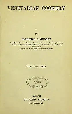 - ^ George, Florence A. (1912). Vegetarian Cookery (6th ed.). London: Edward Arnold.