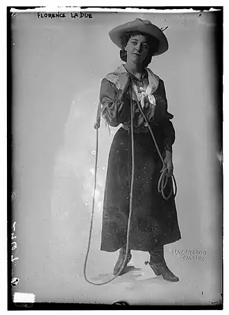 Florence "Flores" LaDue (1883–1951) was the stage name of vaudeville performer and champion trick roper Grace Bensel.[1]