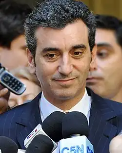 In early 2015 he has announced his intention to run for the 2015 general elections as a precandidate for the presidency of the nation as part of the incumbent Frente para la Victoria party. Deputy Elisa Carrió denounced that he may be in a conflict of interest, as he leads the ministry that organizes the elections, and should either decline his candidacy or resign to his office.[4] In June 2015 he was offered to stand for the position of governor of Buenos Aires Province, a position held by then by Daniel Scioli (who was chosen over Randazzo by the party to be the presidential candidate) and which Randazzo turned down in an open letter.[5][6]