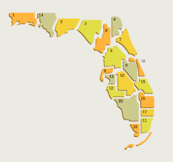 There are 20 judicial circuits in Florida, all but five of which span multiple counties. They are:[4]