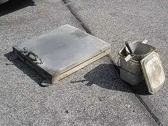 - Flow table with a grip and a hinge, 70 centimetres (28 in) square. In the American version of this test, the table is 10 inches (25 cm) diameter per ASTM C 230.