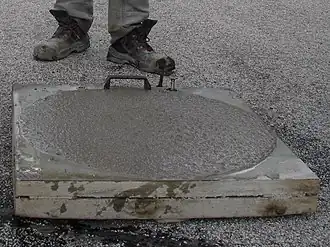 The flow table test or slump-flow test is a method to determine consistency of fresh concrete. Flow table test is also used to identify transportable moisture limit of solid bulk cargoes.[1] It is used primarily for assessing concrete that is too fluid (workable) to be measured using the slump test, because the concrete will not retain its shape when the cone is removed.