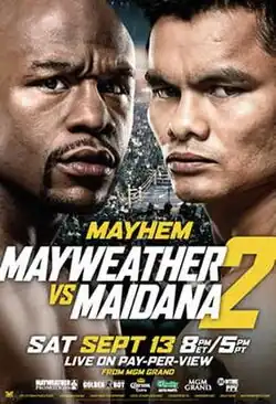 Floyd Mayweather Jr. vs. Marcos Maidana II, billed as Mayhem, was a professional boxing match contested on on September 13, 2014, for the WBC light middleweight title and the WBA, WBC, and The Ring welterweight championship.[2]