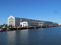 Flynn Cruiseport Boston, formerly known as the Black Falcon Cruise Terminal, is the main port for all cruise ships visiting Boston, Massachusetts. The port is owned and operated by Massport, which operates most of the Port of Boston, and is located in the Seaport District of Boston. It is primarily open between the months of March and November, with its busiest season being in the early fall, as multiple Canada and New England cruises use Flynn Cruiseport as either a port of call or port of departure. In 2018, the port handled over 389,000 passengers, up over 26% from 2016.[4] Massport handled 402,346 passengers with 138 calls by 34 different ships from 21 cruise lines in 2019.[3]