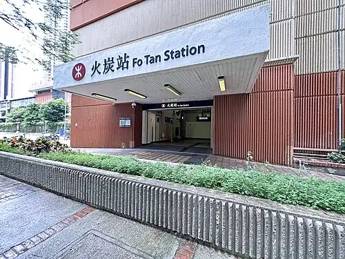 ![]() Exit B of Fo Tan station in July 2023 | ||||||||||||||||||||||||||||||||||||||||||||||||||||||||||||||||||||||||||||||||||||||||||||||||||||||||||||||||||||||||||||||||