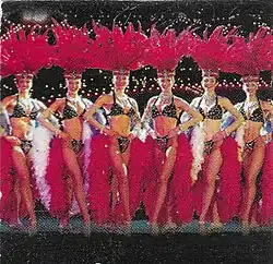 The Folies Bergere spectacular was a cause célèbre depicting frontal nudity and provocative dance moves. It is claimed to have had an annual attendance of over 600,000 guests at the height of its popularity. Entertainment director Lou Walters is credited as the individual responsible for securing the rights from Paris for the Tropicana.[20] The Paris Can-can line dance is considered to have made Folies Bergere Paris world renown and was freely adapted for the American audience.[21]