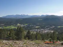 The highest point in the municipality is the 2,178.45-metre (7,147.1 ft) tall mountain Rondeslottet.[1] Folldal Municipality is notable because the village of Folldal, its administrative center, has the highest elevation (712.5 metres or 2,338 feet above sea level) of all administrative centres in Norway. The village has picturesque scenery with mountains and valleys. The village lies at the foot of Rondeslottet mountain and Snøhetta mountain.